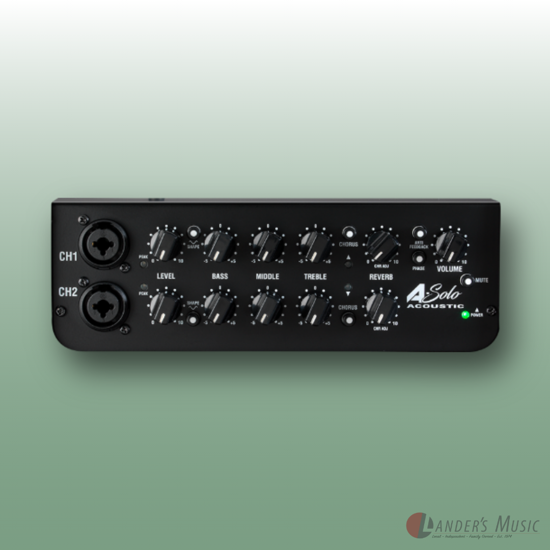 The A-Solo is a professional, compact and portable acoustic guitar amplifier, dedicated to delivering a clean and clear amplified acoustic guitar tone wherever you need it. Whether in the Studio or live on stage the A-SOLO delivers every time. The A-SOLO has two completely independent channel strips. Flexible enough to allow for connection of either a mic and an instrument, two different acoustic instruments or even a blend of separate mic and pickup connections from the same instrument. Equally, at home or on the biggest stages in the world the A-SOLO can be your main sound source on an, intimate stage or your personal monitor on bigger stages. The A-Solo is loaded with big stage pro spec features such as feedback elimination and a pro spec DI out.