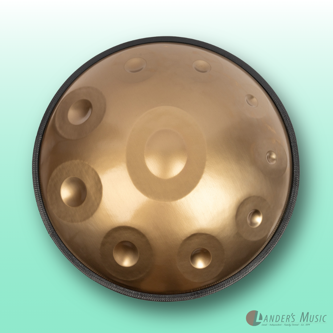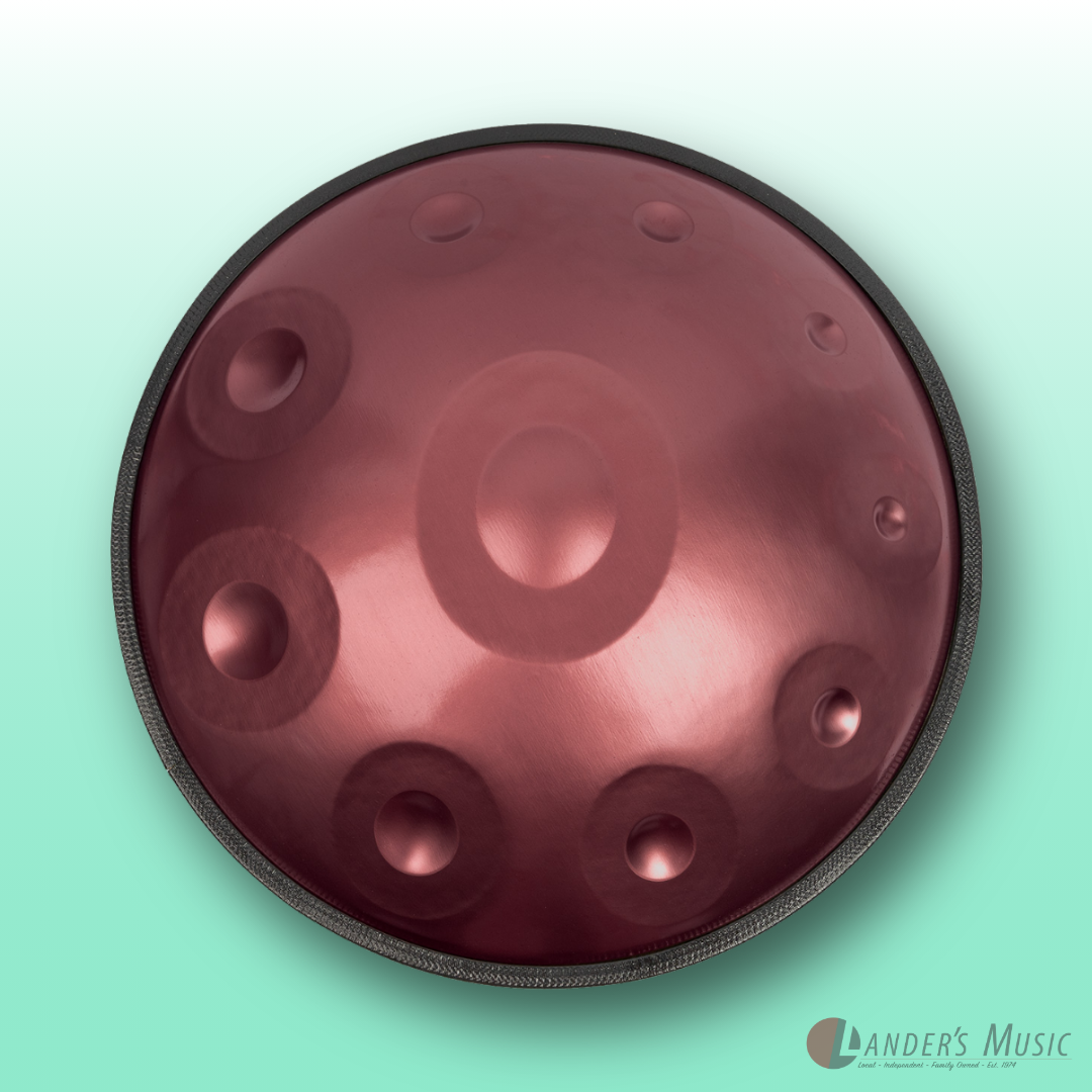 Handcrafted 22 inch stainless steel construction in D Kurd tuning - A3, Bb3, D4, F4, A4,C5, G4, E4, C4 and D3 Ding note. Designed with a “Gu” sound hole on the underside to enhance resonance and warmth. Comes with everything you need to start playing: heavy duty carry bag with shoulder straps, playing stand, protective edge rope braid, beaters, cleaning cloth and note stickers.