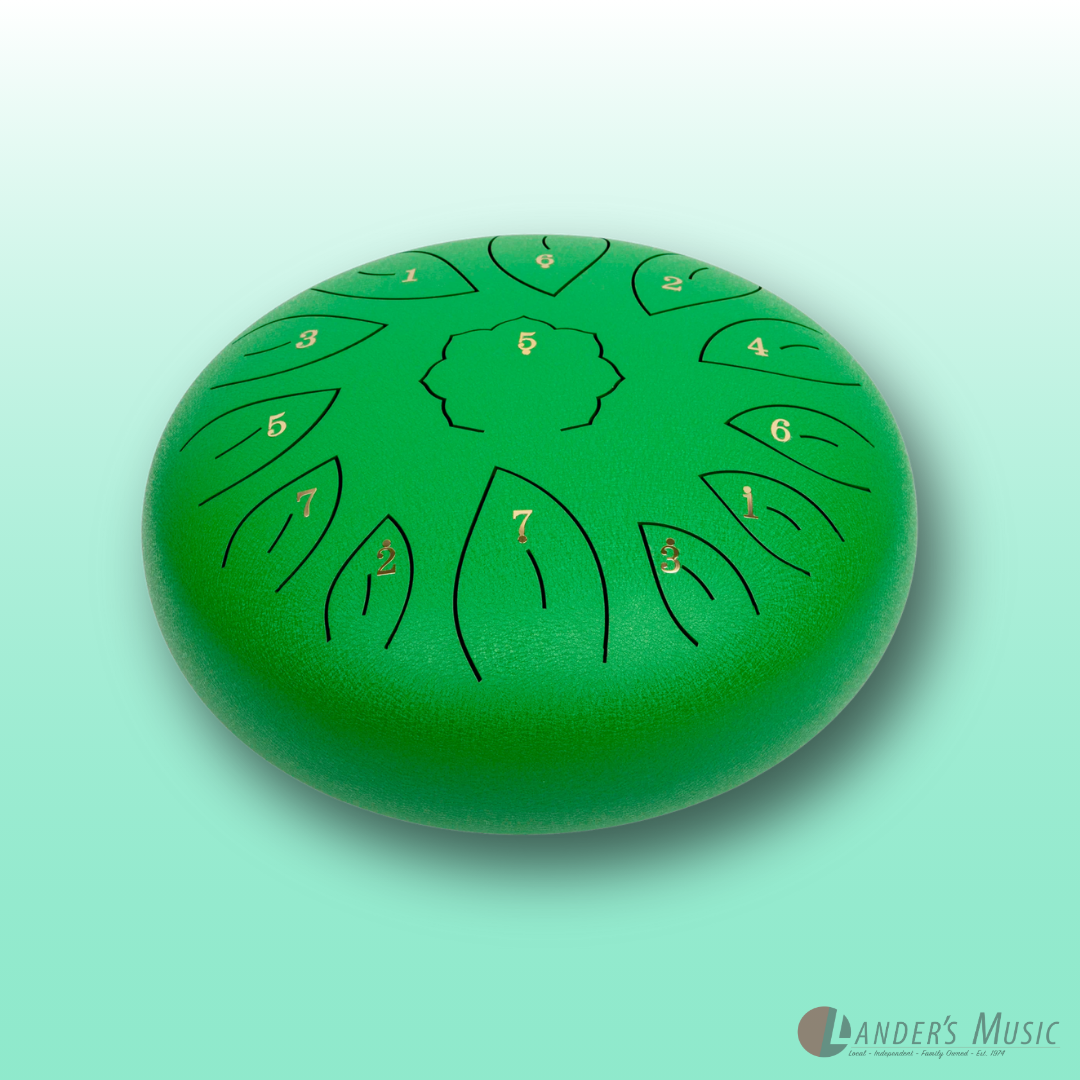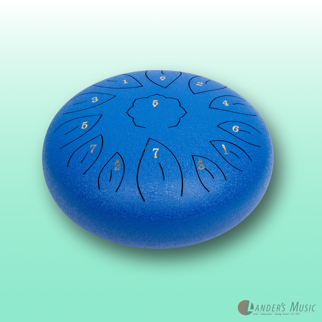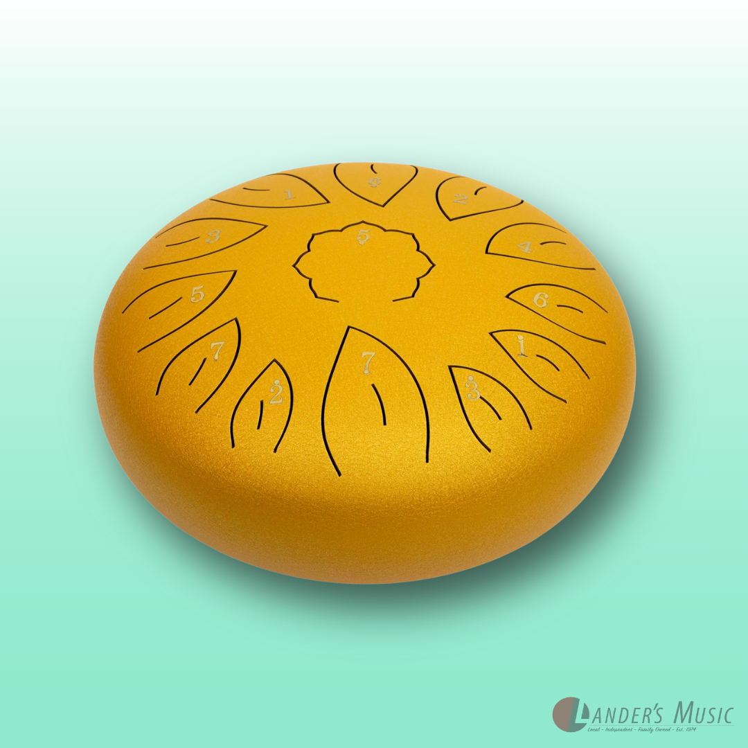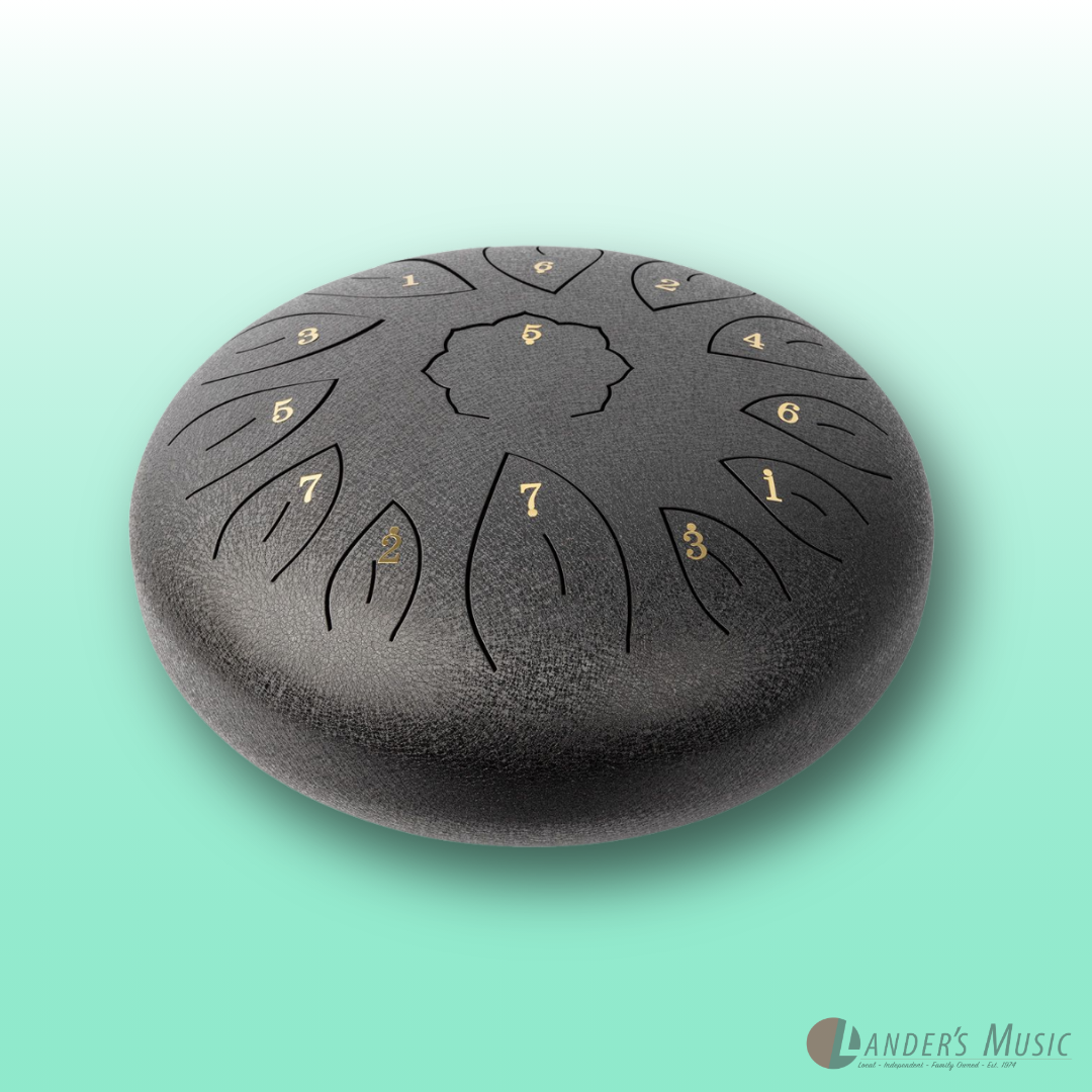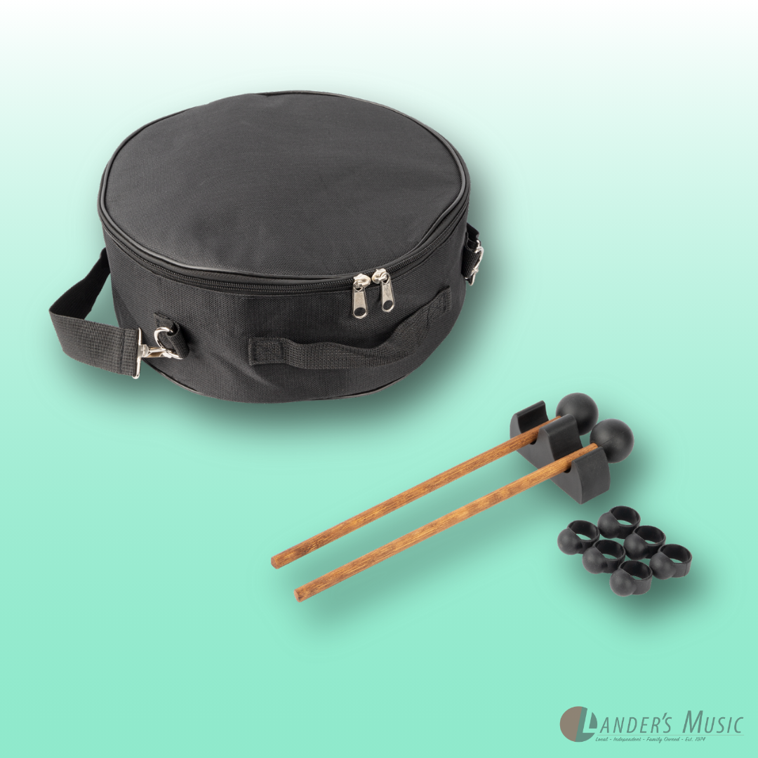 C diatonic. Hand crafted from high grade steel-titanium alloy, coated with a durable paint that protects against tarnishing, scuffs and scratches. 13 hand tuned notes. Supplied with mallets, mallet holder, six rubber finger pads, instructional song booklet and heavy duty carry bag with shoulder strap.