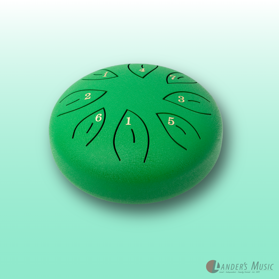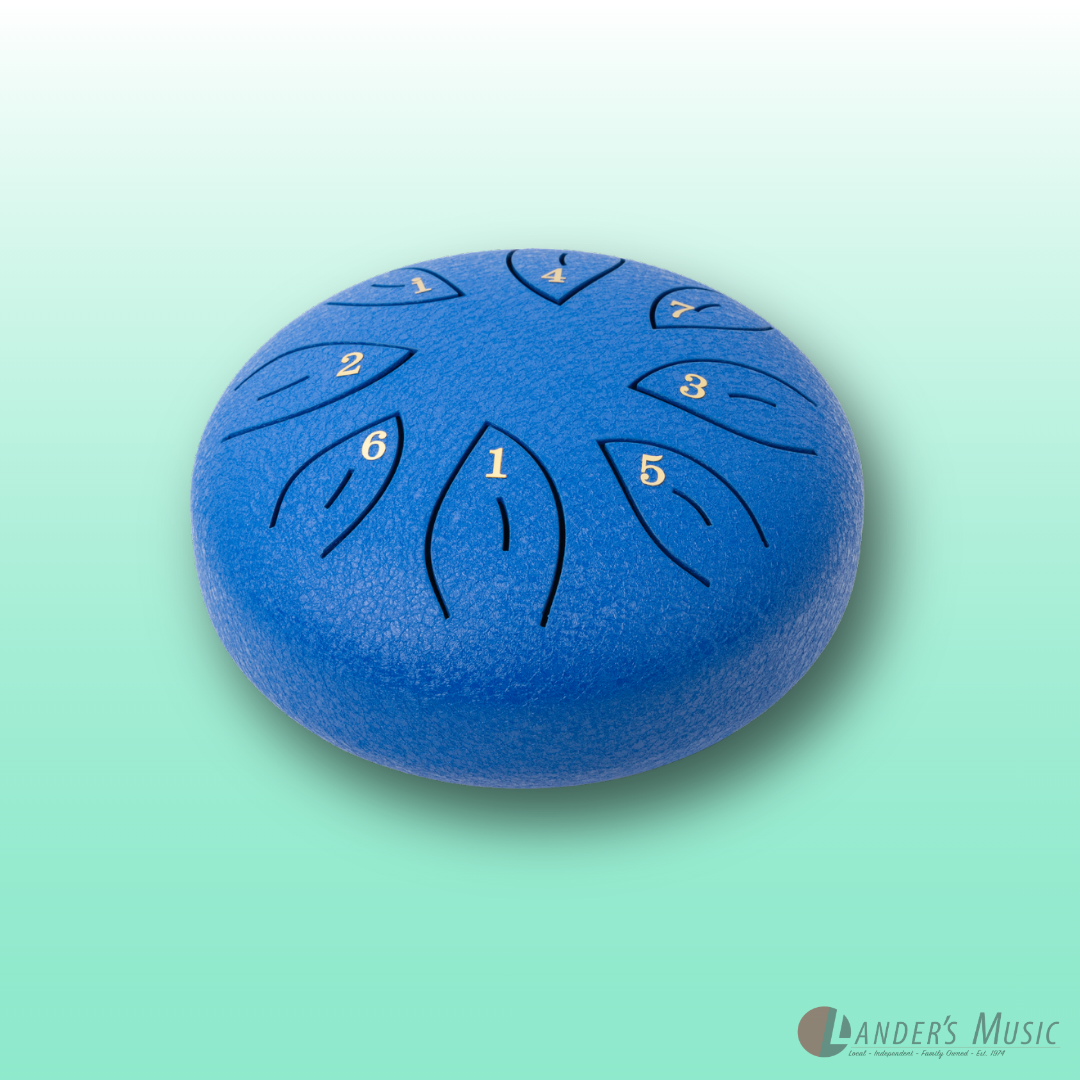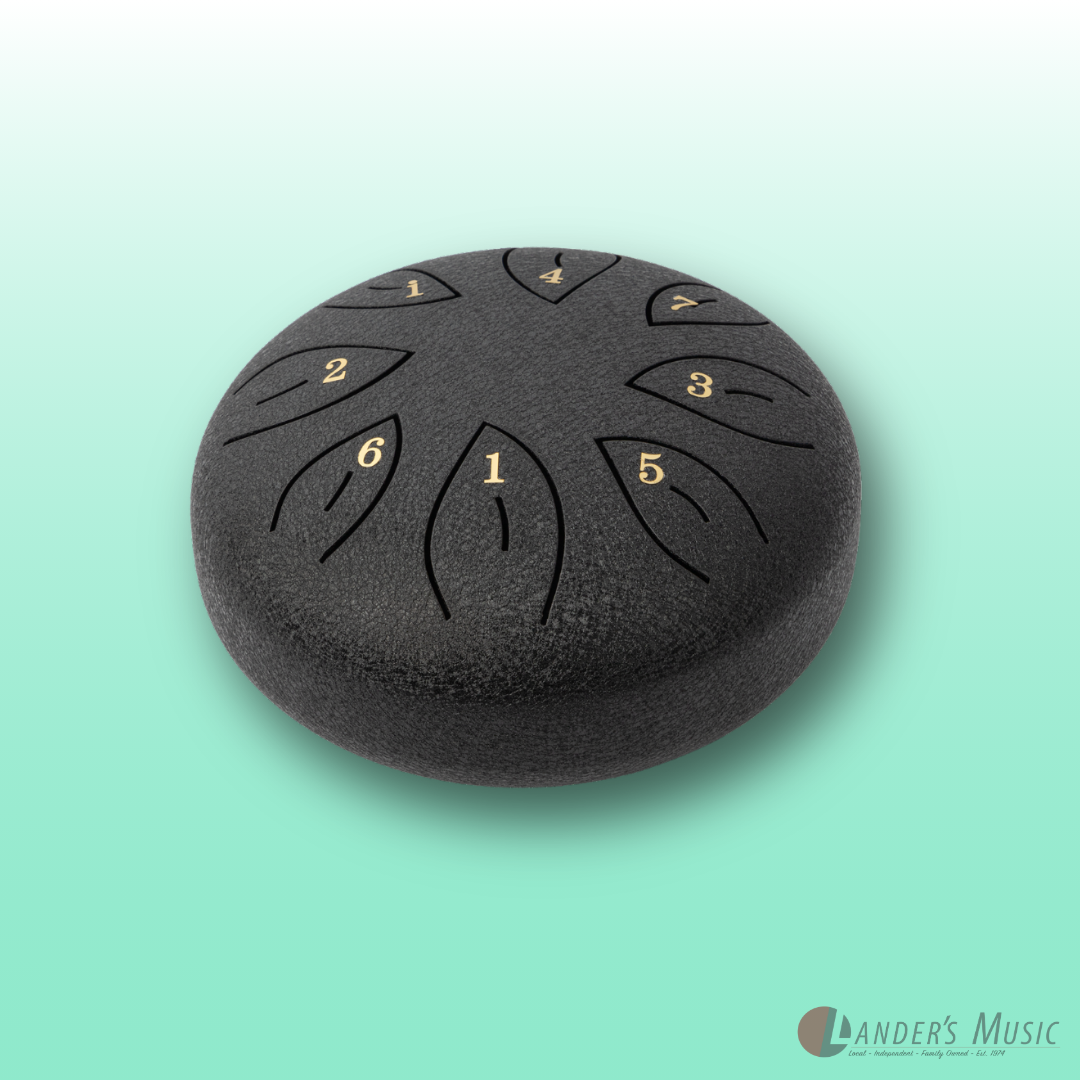 C Diatonic. Hand crafted from high grade steel-titanium alloy, coated with a durable paint that protects against tarnishing, scuffs and scratches. These drums produce a clean, bell like, ethereal tone. 8 hand tuned notes. Supplied with mallets, mallet holder, six rubber finger pads, instructional song booklet and velvet draw string carry bag.
