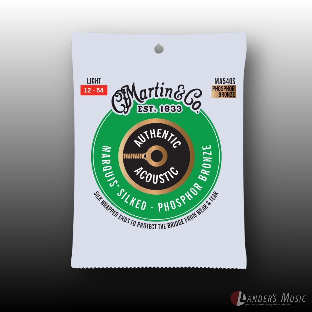 Expertly crafted for a clear, balanced tone, the Martin & Co Light Authentic 12-54 Marquis Silked Acoustic Strings are a top choice for professional musicians. The unique silk wrap on the wound strings delivers a warm sound with extra sustain, making these strings perfect for acoustic performances.