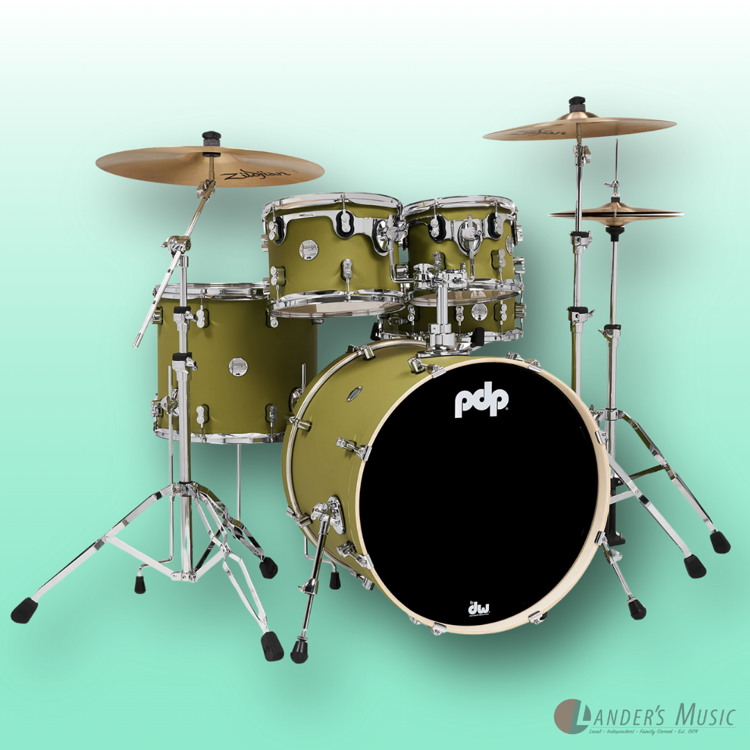 PDP Concept Maple Series 22" Satin Olive 5 Piece Drum Kit with Hardware