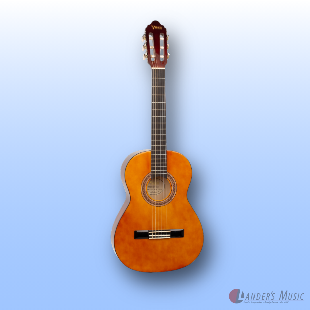 Introducing the perfect introductory guitar: The Valencia VC103! This 3/4 size guitar is ideal for kids or those with smaller hands, and its nylon strings create a light, smooth feel. Play with ease and comfort, and make your music come alive!