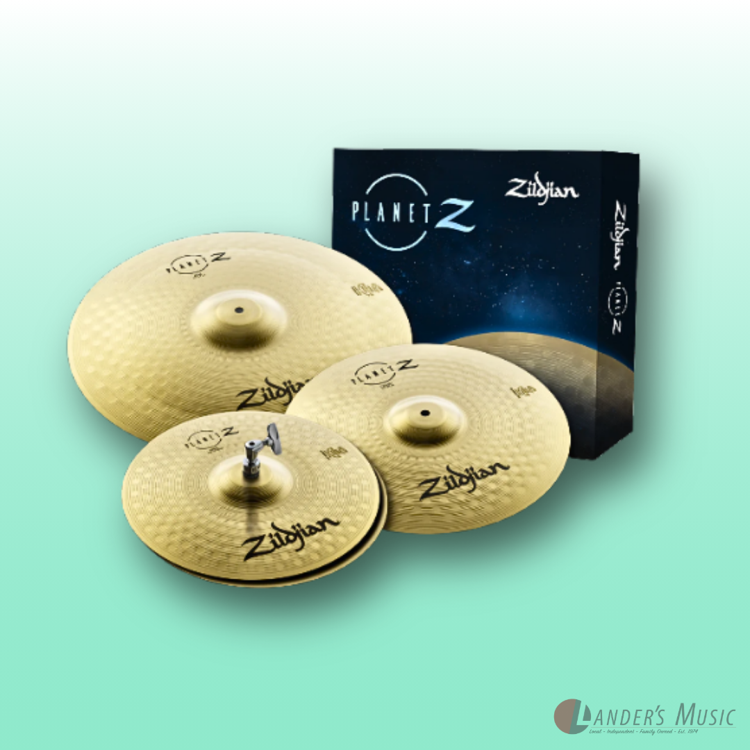 The Zildjian Planet Z Cymbal Pack is the perfect way to get your drum kit sounding professional. This pack includes a 14" hi-hat pair, a 16" crash, and a 20" ride, offering you a wide range of sounds to choose from. Plus, Zildjian's renowned quality ensures a great sound, every time!
